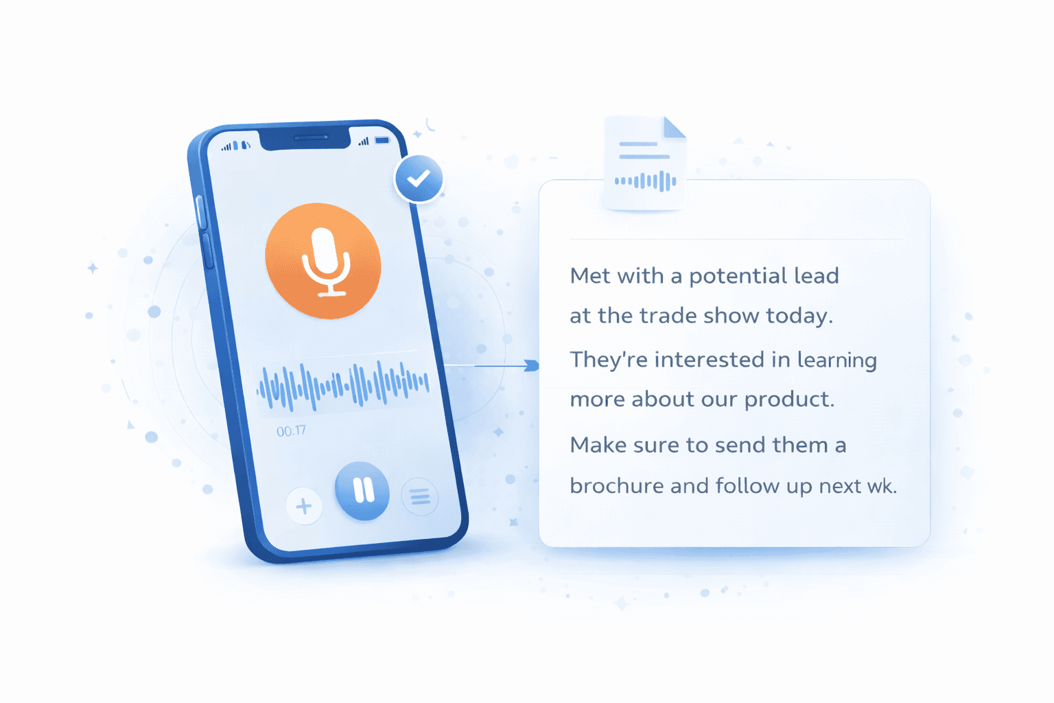 Record a quick note after a meeting — AI transcribes it into clean text for faster follow-ups and CRM updates.